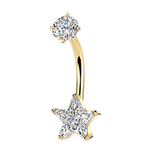 Zlacený ocelový piercing do pupíku hvězda