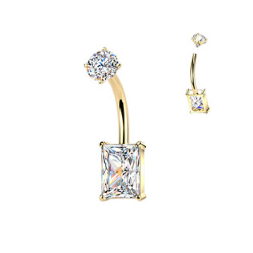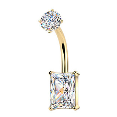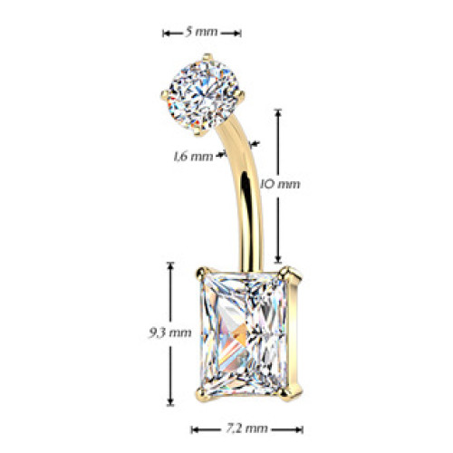 Piercing do pupíku s ozdobnou částí tvořící zirkon obdélníkového tvaru