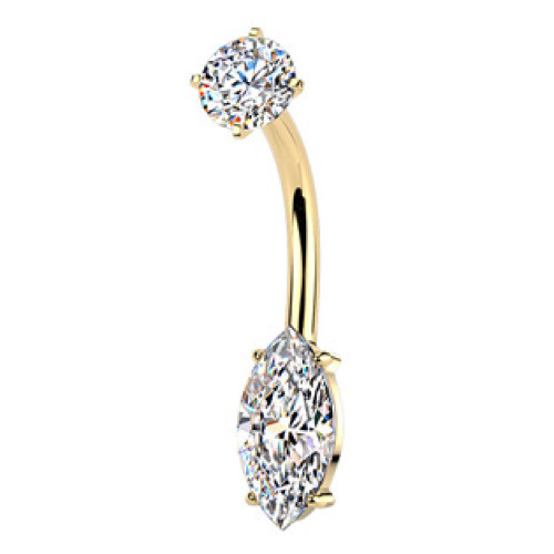 Zlacený piercing do pupíku dekorovaný kubickými zirkony čiré barvy