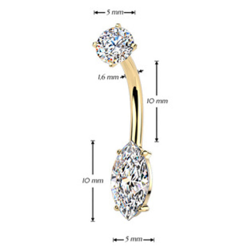 Zlacený ocelový piercing do pupíku se zirkony