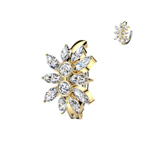 Zlacený piercing do pupíku s kytičkou
