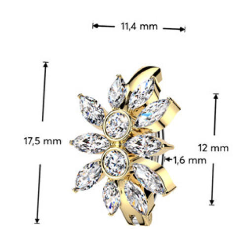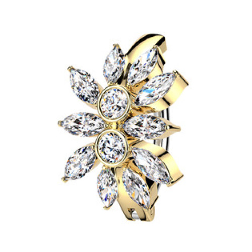 Nudí-li Vás již klasické pupíkovky, pak věříme, že Vás zaujme tento nový typ piercingu do pupíku se štítem v podobě kytičky zdobené čirými zirkony