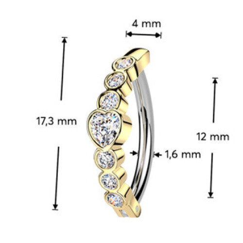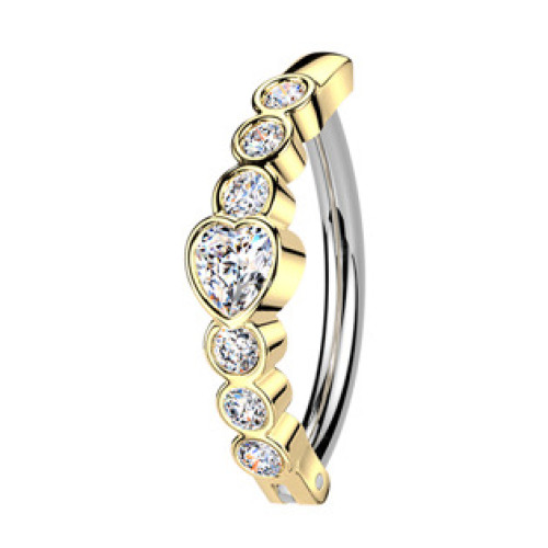 Zlacený piercing do pupíku se štítem se srdíčky