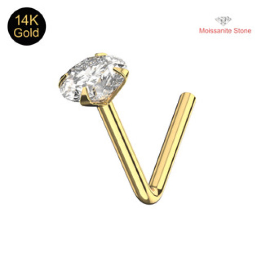 Zlatý piercing do nosu, MOISSANIT, Au 585/1000