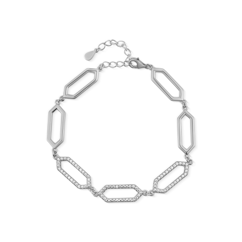 VLASTNOSTI Typ náramku: řetízkové Délka náramku: 18 cm Materiál: rhodiované stříbro Barva: čirá Barva: stříbrná Ryzost: Ag 925/1000 Osazení: zirkon Povrchová úprava: bez povrchové úpravy