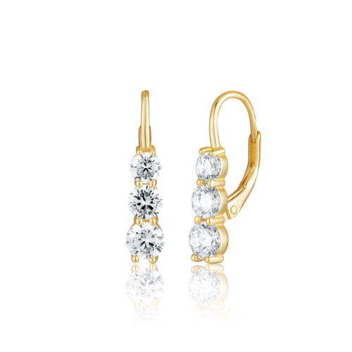 VLASTNOSTI Typ náušnic: klasické Materiál: rhodiované stříbro Barva: čirá Barva: žluté zlacení Ryzost: Ag 925/1000 Typ zapínání náušnic: klapka Osazení: zirkon Povrchová úprava: IPGold šířka: 5 mm výška: 23 mm hloubka: 12 mm