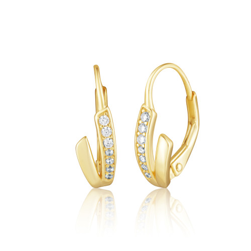 VLASTNOSTI Typ náušnic: klasické Barva: žluté zlacení Barva: čirá Materiál: rhodiované stříbro Ryzost: Ag 925/1000 Typ zapínání náušnic: klapka Osazení: zirkon Povrchová úprava: IPGold šířka: 6 mm výška: 18 mm hloubka: 12 mm