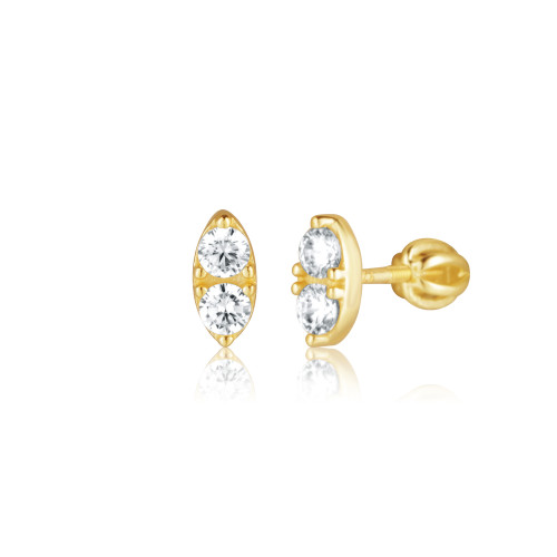 VLASTNOSTI Typ náušnic: pecky Barva: čirá Barva: žluté zlacení Materiál: rhodiované stříbro Ryzost: Ag 925/1000 Typ zapínání náušnic: šroubek Osazení: zirkon Povrchová úprava: IPGold šířka: 3 mm výška: 8 mm hloubka: 14.5 mm