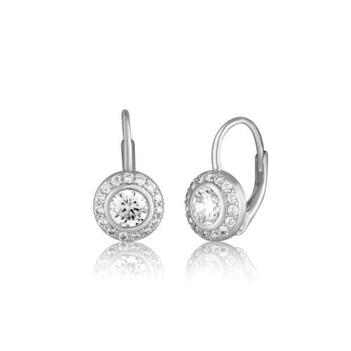 VLASTNOSTI Typ náušnic: klasické Materiál: rhodiované stříbro Barva: stříbrná Barva: čirá Ryzost: Ag 925/1000 Typ zapínání náušnic: klapka Osazení: zirkon Povrchová úprava: bez povrchové úpravy šířka: 9 mm výška: 17 mm hloubka: 12 mm