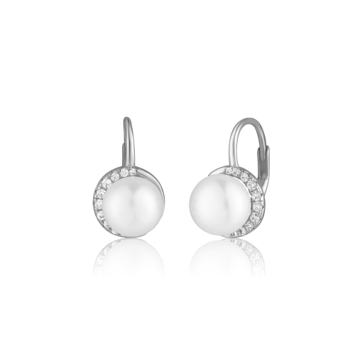 VLASTNOSTI Typ náušnic: klasické Materiál: rhodiované stříbro Barva: bílá Barva: stříbrná Barva: čirá Ryzost: Ag 925/1000 Typ zapínání náušnic: klapka Osazení: zirkon Osazení: perla Povrchová úprava: bez povrchové úpravy šířka: 10 mm výška: 17 mm hloubka: 17 mm