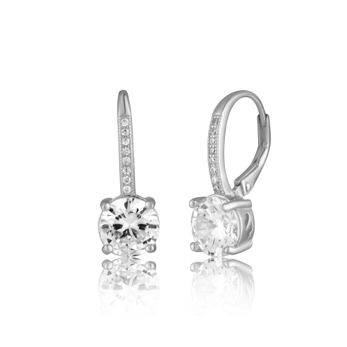 VLASTNOSTI Typ náušnic: klasické Materiál: rhodiované stříbro Barva: stříbrná Barva: čirá Ryzost: Ag 925/1000 Typ zapínání náušnic: klapka Osazení: zirkon Povrchová úprava: bez povrchové úpravy šířka: 8 mm výška: 22 mm hloubka: 16 mm