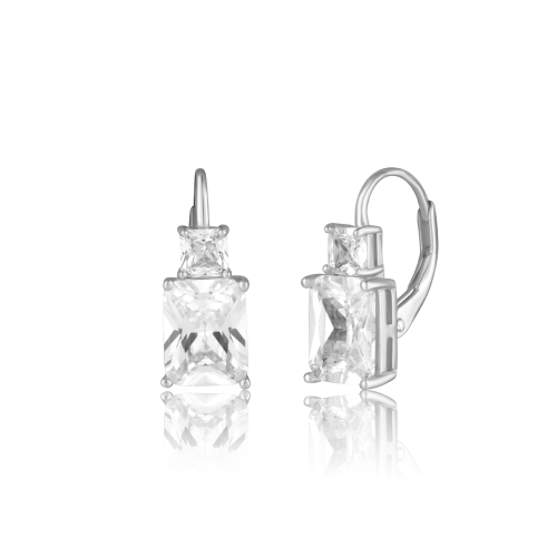 VLASTNOSTI Typ náušnic: klasické Barva: stříbrná Barva: čirá Materiál: rhodiované stříbro Ryzost: Ag 925/1000 Typ zapínání náušnic: klapka Osazení: zirkon Povrchová úprava: bez povrchové úpravy šířka: 7 mm výška: 18 mm hloubka: 14 mm