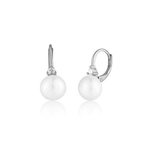 VLASTNOSTI Typ náušnic: klasické Barva: čirá Barva: stříbrná Materiál: rhodiované stříbro Ryzost: Ag 925/1000 Typ zapínání náušnic: klapka Osazení: zirkon Osazení: perla Povrchová úprava: bez povrchové úpravy šířka: 9 mm výška: 18 mm hloubka: 15 mm