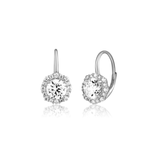 VLASTNOSTI Typ náušnic: klasické Materiál: rhodiované stříbro Barva: stříbrná Barva: čirá Ryzost: Ag 925/1000 Typ zapínání náušnic: klapka Osazení: zirkon Povrchová úprava: bez povrchové úpravy šířka: 11 mm výška: 19 mm hloubka: 15 mm
