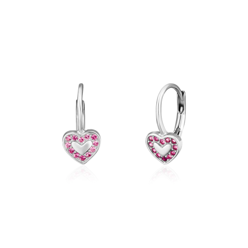VLASTNOSTI Typ náušnic: klasické Barva: stříbrná Barva: růžová Materiál: rhodiované stříbro Ryzost: Ag 925/1000 Motiv: srdce Typ zapínání náušnic: klapka Osazení: zirkon Povrchová úprava: bez povrchové úpravy šířka: 7 mm výška: 14 mm
