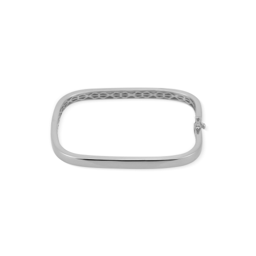 VLASTNOSTI Typ náramku: pevné Materiál: rhodiované stříbro Barva: stříbrná Ryzost: Ag 925/1000 Osazení: bez kamene Povrchová úprava: bez povrchové úpravy šířka: 71 mm výška: 60 mm hloubka: 5 mm