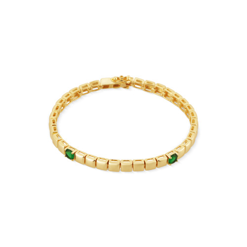 VLASTNOSTI Typ náramku: pevné Délka náramku: 19 cm Materiál: rhodiované stříbro Barva: žluté zlacení Barva: zelená Ryzost: Ag 925/1000 Osazení: zirkon Povrchová úprava: IPGold