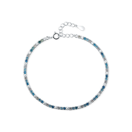 VLASTNOSTI Typ náramku: řetízkové Délka náramku: 18 cm Materiál: rhodiované stříbro Barva: modrá Barva: čirá Barva: stříbrná Ryzost: Ag 925/1000 Osazení: zirkon Povrchová úprava: bez povrchové úpravy