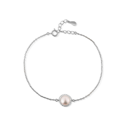 VLASTNOSTI Typ náramku: řetízkové Délka náramku: 18 cm Materiál: rhodiované stříbro Barva: bílá Barva: čirá Barva: stříbrná Ryzost: Ag 925/1000 Osazení: zirkon Osazení: perla Povrchová úprava: bez povrchové úpravy