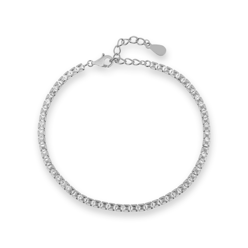 VLASTNOSTI Typ náramku: řetízkové Délka náramku: 18 cm Materiál: rhodiované stříbro Barva: stříbrná Barva: čirá Ryzost: Ag 925/1000 Osazení: zirkon Povrchová úprava: bez povrchové úpravy