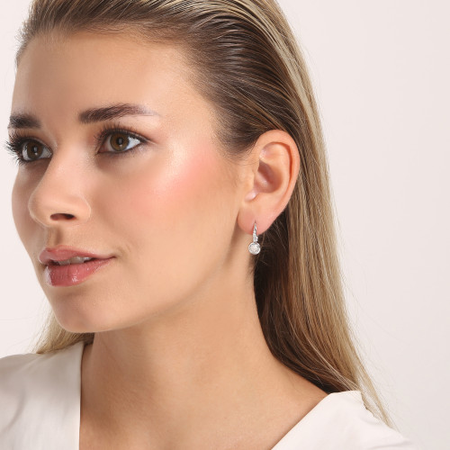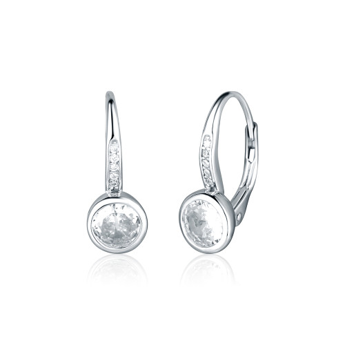 VLASTNOSTI Typ náušnic: klasické Barva: stříbrná Barva: čirá Materiál: rhodiované stříbro Ryzost: Ag 925/1000 Typ zapínání náušnic: klapka Osazení: zirkon Povrchová úprava: bez povrchové úpravy šířka: 9 mm výška: 19 mm hloubka: 14 mm