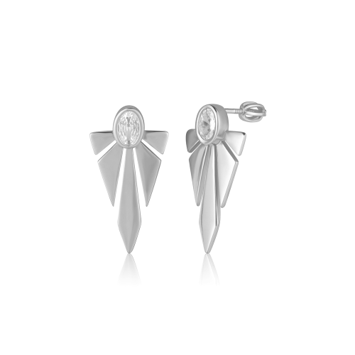 VLASTNOSTI Typ náušnic: klasické Typ náušnic: visací Materiál: rhodiované stříbro Barva: stříbrná Barva: čirá Ryzost: Ag 925/1000 Typ zapínání náušnic: šroubek Osazení: zirkon Povrchová úprava: bez povrchové úpravy šířka: 14 mm výška: 26 mm hloubka: 16 mm