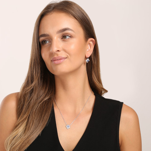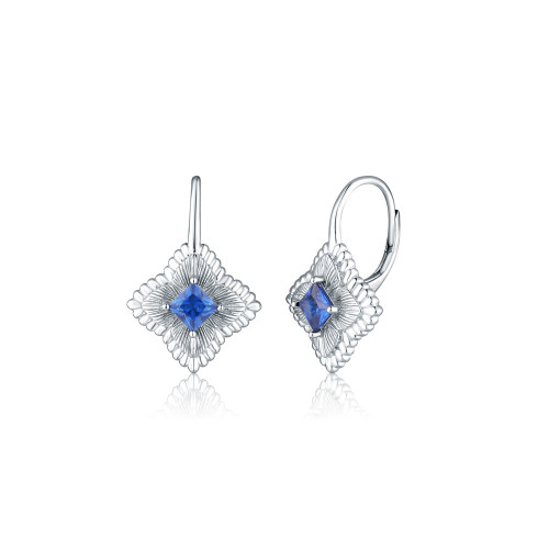 VLASTNOSTI Typ náušnic: klasické Materiál: rhodiované stříbro Barva: modrá Barva: stříbrná Ryzost: Ag 925/1000 Typ zapínání náušnic: klapka Osazení: zirkon Povrchová úprava: bez povrchové úpravy šířka: 15 mm výška: 21 mm hloubka: 12 mm