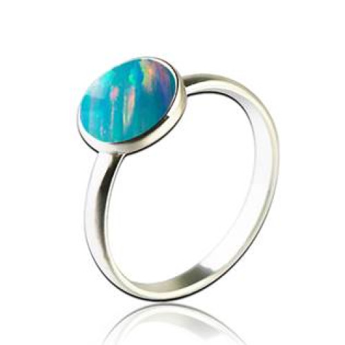 Stříbrný prsten se syntetickým opálem tyrkysové barvy