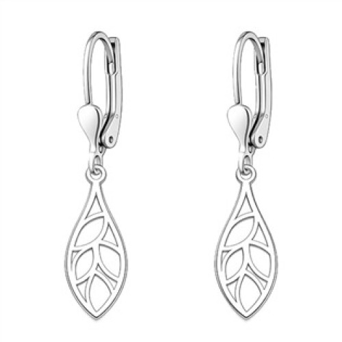 Elegantní stříbrné náušnice zaujmou jemným motivem stylizovaného lístku v protáhlém tvaru. Prořezávaný vzor uvnitř dodává šperku lehkost a přirozený charakter inspirovaný přírodou.