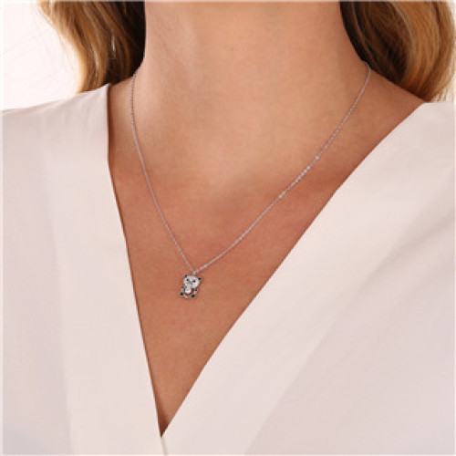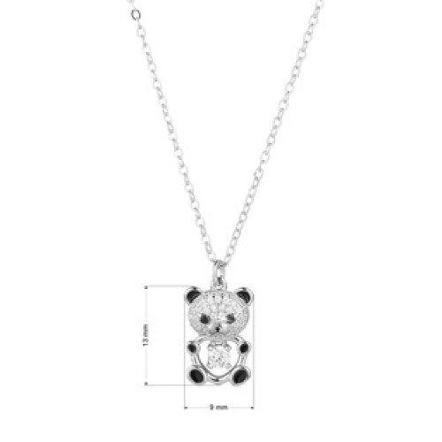 Tento náhrdelník s přívěskem ve tvaru roztomilého medvídka okouzlí svým originálním designem a jiskřivým zpracováním. Medvídkova hlava je celá osázena zirkony a tělíčko má ve tvaru srdíčka, ve kterém se pohupuje velký třpytivý zirkon, který doslova září v paprscích světla.