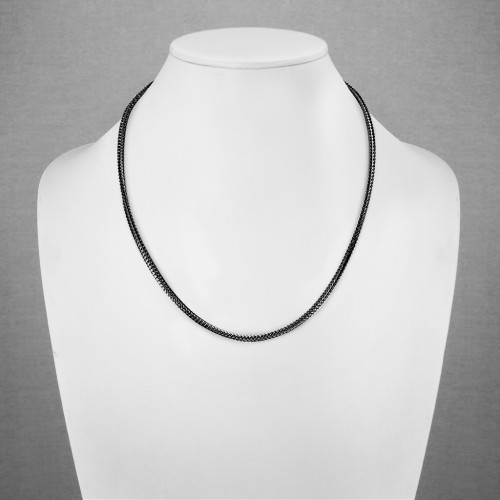 Hranatý ocelový řetízek s černým povrchem. Řetízek je vyroben z chirurgické oceli s jakostním označením 316L.