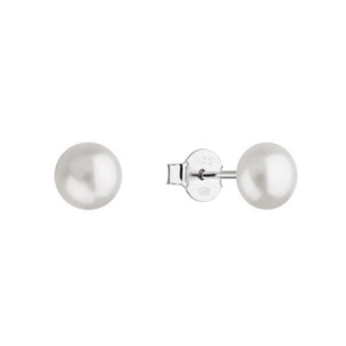Klasické jednoduché stříbrné náušnice s bílými říčními perlami o rozměru 6 mm