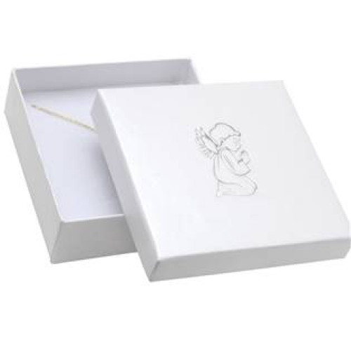 Bílá dárková krabička na soupravu, stříbrný anděl