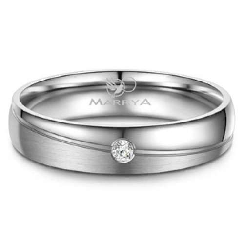 Dámský prsten má kombinovaný matný a lesklý povrch a je dekorován decentní šikmou drážkou do které je vsazen zirkon čiré barvy