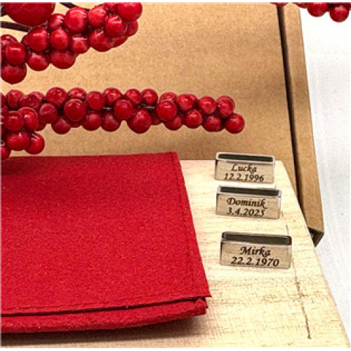 Celkově lze na obě destičky umísit až 4 řádky textu: 3 řádky na širší z korálků a 1 řádek textu na tenší korálek. Aby byla zachována dobrá čitelnost výsledné rytiny, může být délka textu maximálně 10 znaků na jeden řádek. (znak = čislice, písmeno, mezera, symbol)