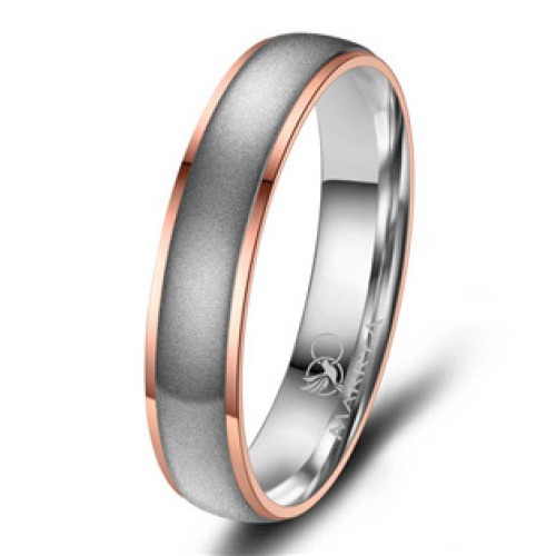 Pánský prsten má matnou povrchovou úpravou s bočními zlacenými drážkami v barvě růžového zlata. Prsten má lehce zaoblený profil a pro pohodlné nošení je prsten uvnitř bombírovaný.