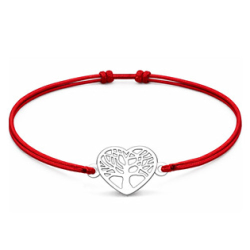 Jemný náramek se stříbrným motivem stromu života zasazeným do tvaru srdce představuje spojení lásky, síly a harmonie. Precizně vyřezaný design působí lehce a vzdušně, zatímco kontrast se saténovou šňůrkou dodává šperku moderní a svěží vzhled. Nastavitelná délka umožňuje pohodlné přizpůsobení každému zápěstí, díky čemuž je náramek ideální jak pro běžné nošení, tak jako jemný symbolický doplněk.