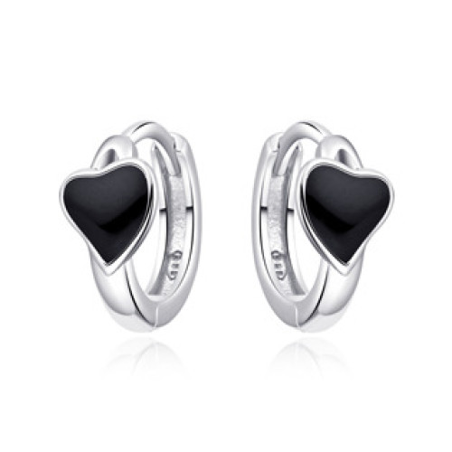 Náušnice jsou dekorované srdíčky s černým smaltovaným povrchem a jsou upraveny rhodiací