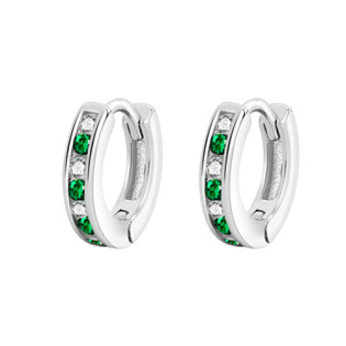 Dámské náušnice kroužky dekorované kubickými zirkony zelené a čiré barvy. Náušnice jsou vyrobeny ze stříbra s jakostním označením 925/1000 povrchově upravené rhodiováním