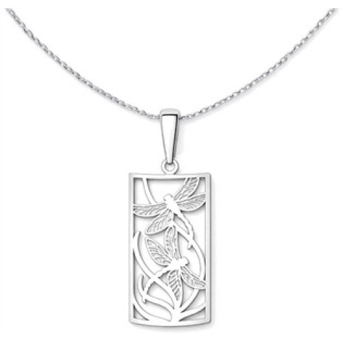 Jemný stříbrný přívěsek s motivem vážek zachycuje krásu pohybu, světla a přirozené elegance. Propracované linie v obdélníkovém rámu působí vzdušně a harmonicky, a přesto velmi výrazně.